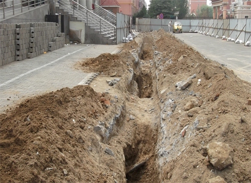 烏蘭道(三八路—民族東路)段/少先路(三八路—萬青路)段供熱管道施工已開始,在烏蘭道/少先路南側施工涉及全段跨路通信管道,目前部分跨路通信管道挖出裸露,已落實高吊保護。